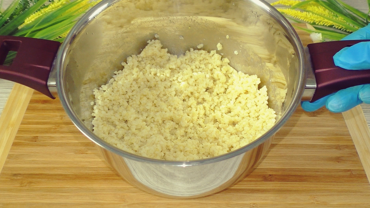 Пшено промывают и варят до полуготовности, затем дают остыть. Белки отделяют и взбивают с сахаром в крепкую пену. В охлаждённую кашу добавляют соль и желтки, постепенно вливая тёплое молоко. Смесь можно измельчить блендером до однородности; при отсутствии блендера можно оставить крупинки — всё равно получится вкусно.