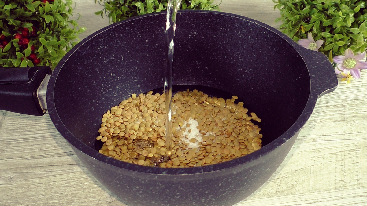 Подготовка данного блюда начинается с промывания 200 г зелёной чечевицы под холодной водой. Именно зелёная чечевица является одним из самых полезных представителей бобовых, недаром она славится высоким содержанием белка и клетчатки. Эти компоненты способствуют улучшению пищеварения и поддержанию нормального уровня сахара в крови, что делает чечевицу незаменимой для сбалансированного питания.