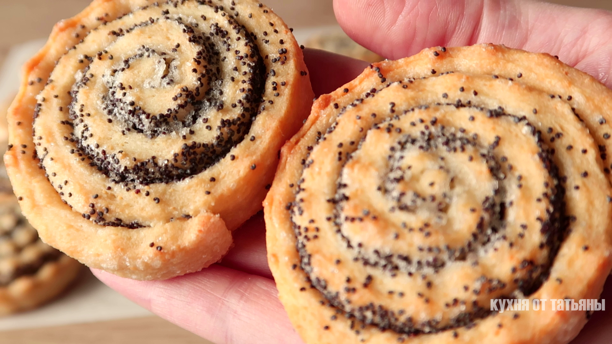 После охлаждения тесто раскатывается в пласт толщиной около 3 мм на сахарном песке, что позволит избежать прилипания. Затем равномерно распределяется сахар и кондитерский мак по поверхности. Тесто аккуратно сворачивается и нарезается на кусочки шириной около 2 см. Заготовки выкладываются на противень и отправляются в заранее разогретую до 180°C духовку.