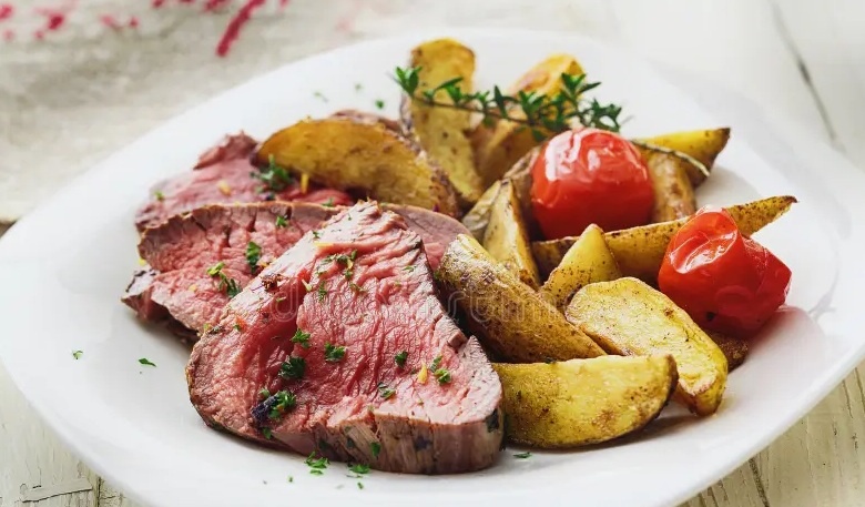 Запечённая говядина с картошкой и помидорами