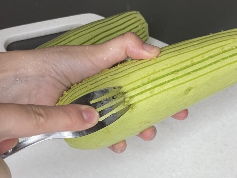 - Нарезать кабачки колечками толщиной около 2-3 см.