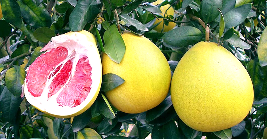 Под кожурой скрывается плотная белая мякоть (альбедо), а сами дольки могут иметь светло-желтый, розовый или красный оттенок. Вкус помело, как правило, сладкий и освежающий, с легкой кислинкой, а аромат менее интенсивный, чем у его ближайших собратьев — апельсинов и грейпфрутов.