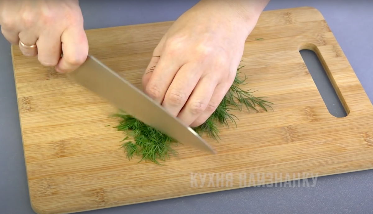 - Нарезка зелени. Используйте любую зелень на ваш вкус. Если подаете соус к овощам, отлично подойдут базилик, петрушка и несколько листьев мяты. Для рыбы обычно выбирают петрушку, а укроп будет хорош как с мясом, так и с любыми овощами.