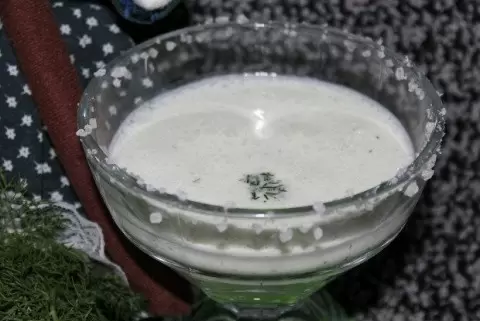 3. Готовый напиток можно разлить по чашкам, предварительно украсив края крупинками соли для визуальной привлекательности.
