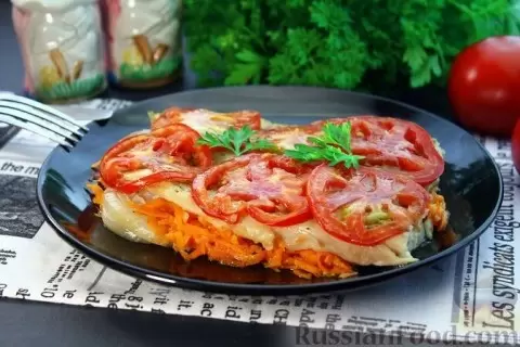 Запечь рыбу с помидорами, морковью и луком — это не только просто, но и полезно. Филе можно завернуть в пергамент, чтобы сохранить все ароматы и соки. Блюдо получается диетическим и очень быстрым в приготовлении, при минимуме посуды.