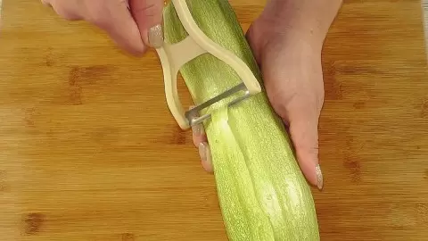 Для начала, кабачки нужно помыть и нарезать вдоль на тонкие пластины толщиной около 5 мм. Как и решать, снимать кожуру или нет, здесь выбор остается за кулинаром. Можно обжарить кабачки на электро гриле без добавления соли и масла, либо на сковороде с растительным маслом. В таком случае после жарки следует выложить кабачки на бумажное полотенце для устранения лишнего масла.