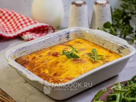- Омлет с ветчиной в аэрогриле — Ингредиенты: 3 яйца, 100 мл молока, 100 г ветчины, 50 г помидоров черри, по вкусу соль и черный перец. Время приготовления: 30 минут. Калорийность: 144 кКал.