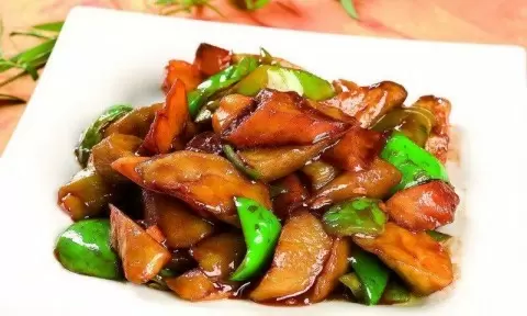 - Нарезать картофель, перец и баклажаны на равные кусочки. Перед жаркой баклажаны рекомендуется посолить и оставить на 15-20 минут, затем отжать и обсушить на бумажном полотенце — это поможет избежать чрезмерной жирности.