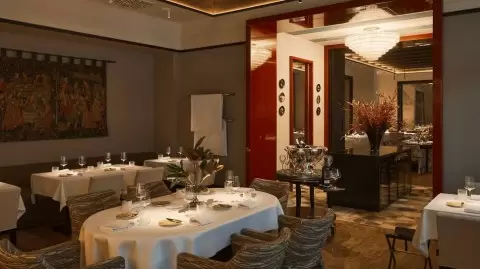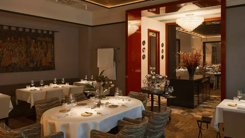 Меню пестрить редкими ингредиентами, такими как норвежские омары и мраморная свинина. Ресторан с изысканным дизайном, где каждое произведение искусства создает атмосферу утонченной роскоши.