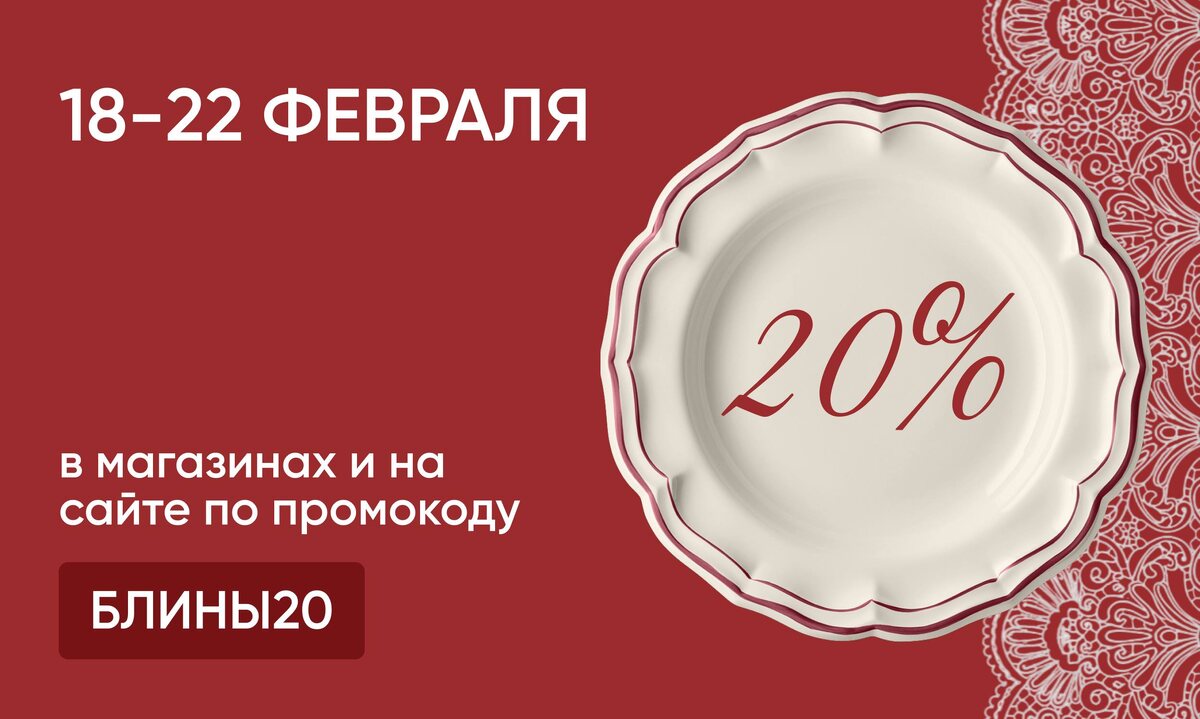 В честь праздника объявлены долгожданные скидочные дни! С 18 по 22 февраля у вас есть возможность обновить свою посуду и сделать завтраки во время Масленицы по-настоящему незабываемыми.