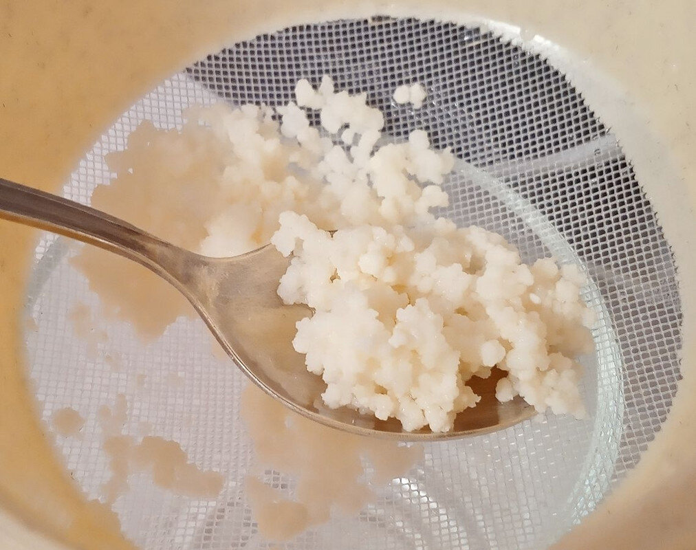 Если наблюдается слизистость грибков или тягучесть в кефире, промойте грибки под прохладной питьевой водой на ситечке, чтобы удалить остатки слизи.