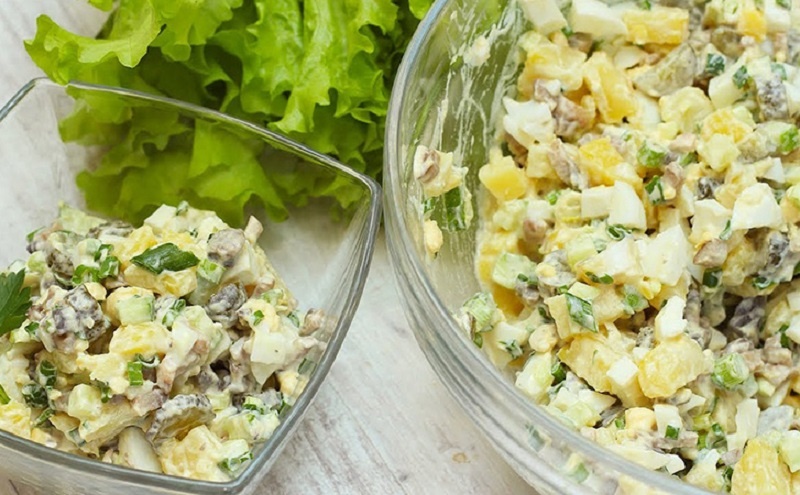 В конце XIX и начале XX века в Европе и России начали формироваться традиции домашних застолий. Салаты с курицей и грибами постепенно завоевывали популярность. Простота их приготовления и возможность варьировать ингредиенты сделали их настоящим находкой для хозяек — от семейных обедов до праздничных ужинов. Такие блюда легко готовятся заранее и могут адаптироваться под любые вкусы.