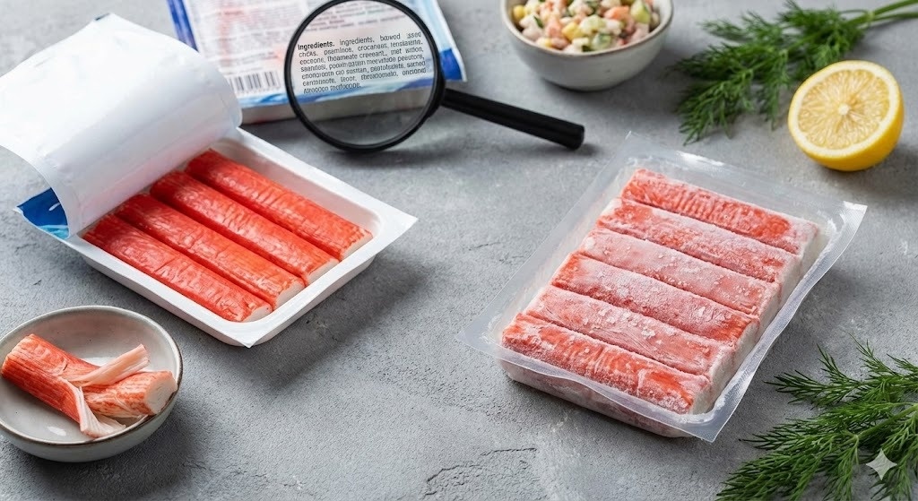 Чтение состава – ключ к успеху. Первым пунктом в списке должен быть сурими, что указывает на наличие рыбного фарша. Если на первом месте вода или крахмал, такие палочки лучше оставить на полке. Качественный продукт содержит от 35% до 40% сурими.
