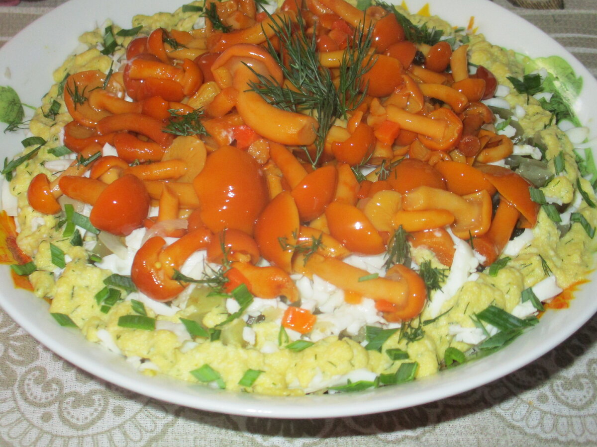 Этот салат привлечет ваш взгляд и порадует вкусом — маринованные опята добавят ему особую изюминку и легкую хрусткость. Приготовление действительно простое, а результат удивительно вкусный!