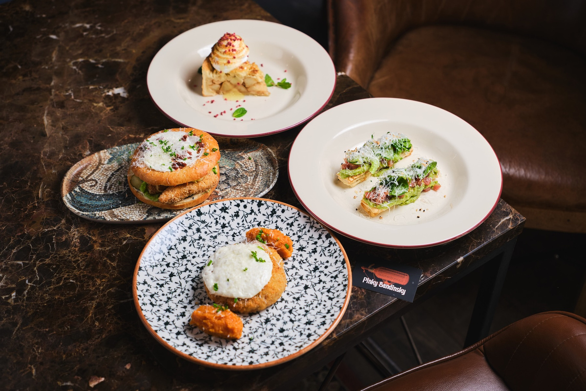 - Pinky Bandinsky — ул. Комсомольская, 13А: бифштекс, бейгл с кунжутом, гуакамоле и эпл пай. Вес: 925 г.