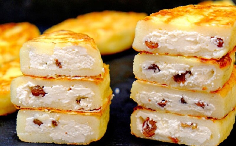Сырники состоят из двух частей: основы и начинки. В качестве начинки используется свежий творог, смешанный с сахаром и сухофруктами. Основой служит манное тесто, которое придает блюду хрустящую оболочку.