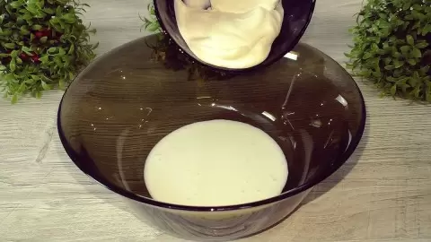В глубокой миске аккуратно соединяются кефир и сметана, к ним добавляют сахар и щепотку соли, тщательно перемешивая венчиком. Далее в смесь вливается растопленный мёд и растительное масло, затем вставляем яйца и снова все перемешиваем.