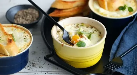 Запеченные яйца были придуманы для тех, кто ценит легкость и вкус. Сначала необходимо разогреть духовку до 180 градусов. Затем, взбив яйца с сметаной, добавить соль и перец. Вылейте смесь в смазанную маслом форму, посыпьте сыром и сверху украсьте базиликом. Выпекайте 15 минут до золотистой корочки и подавайте к столу горячими!