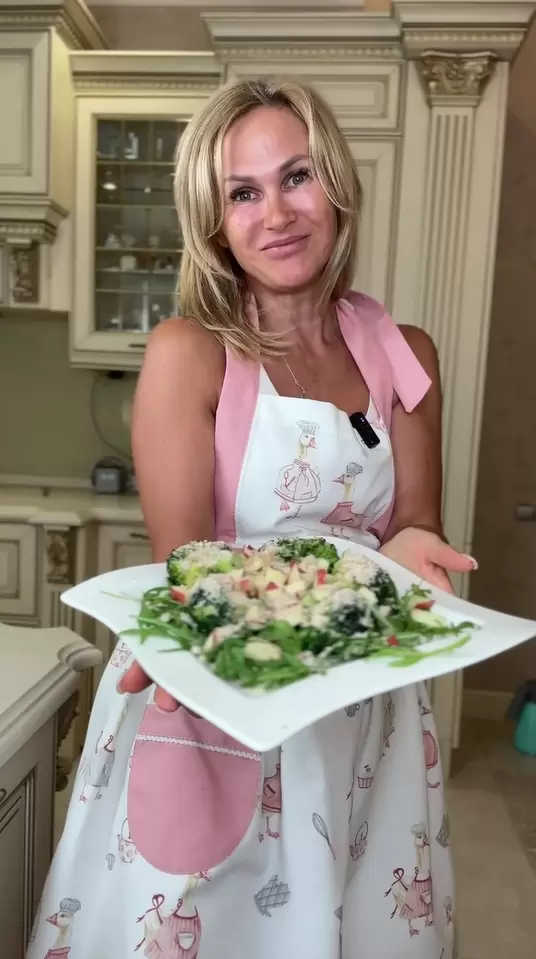 3. На плоской тарелке уложите листья рукколы и шпината, добавьте приготовленную брокколи, порезанные кубиками яблоки. Полейте приготовленным лимонным соком и посыпьте мелко измельченными орехами. Это придаст вашему блюду не только великолепный вкус, но и хрустящую текстуру.