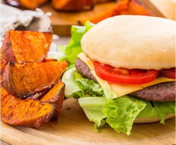 Шаг 7: Подавайте чизбургеры с дольками запечённого батата и оставшимся соусом барбекю.