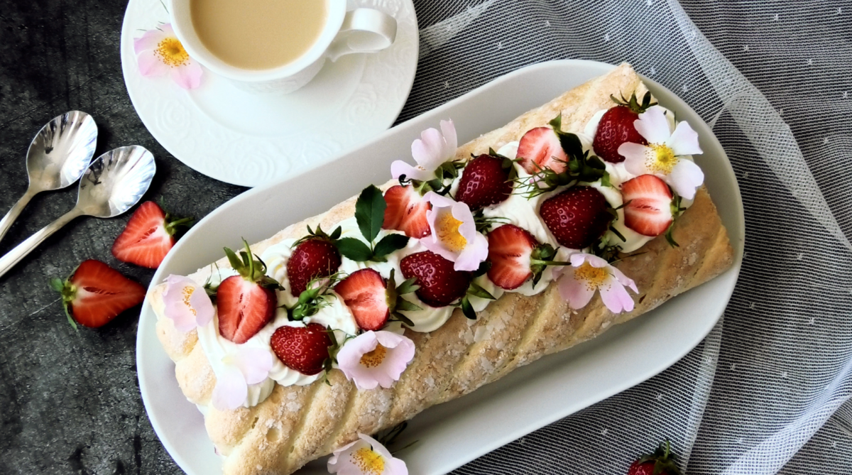 Не забудьте дополнить угощение свежей клубникой — около 300 г прекрасных ягод станут отличным акцентом!