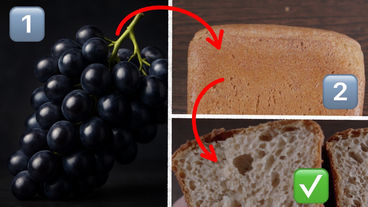 Процесс изготовления хлеба на основе виноградной закваски начинается с самого простого — натурального брожения. В этом случае невидимые существа, находящиеся на кожице винограда, обеспечивают уникальный вкус и текстуру готового продукта. Такой хлеб выделяется своей пористостью, сбалансированным вкусом и высокой хлебопекарной активностью.