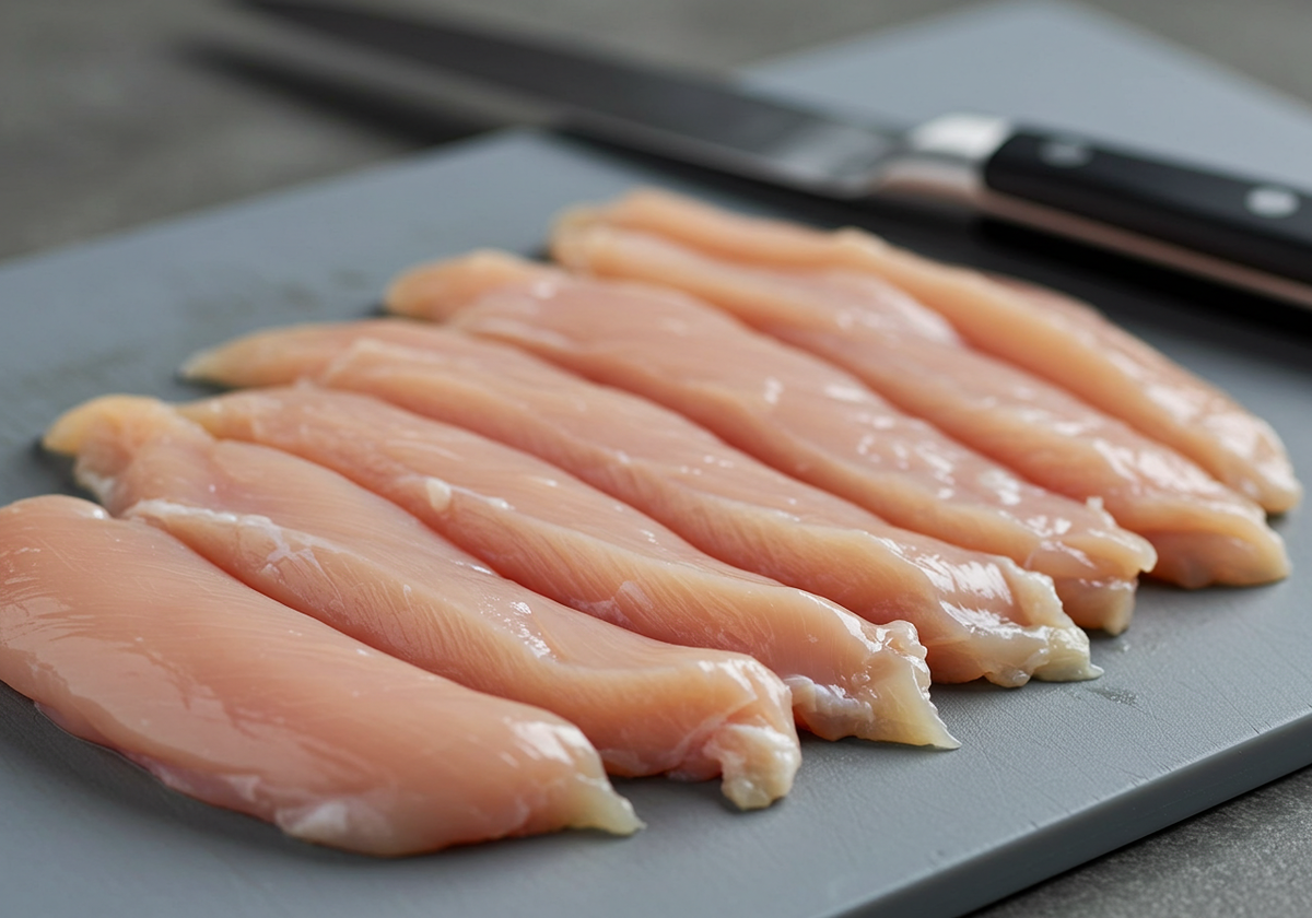 Перед началом работы важно правильно подготовить куриное филе. Следует снять кожу, убрать лишнее и тщательно промыть мясо — свежесть и чистота являются залогом успеха. После этого курицу необходимо нарезать на полоски шириной около 2,5 см. Так они будут быстрее и равномернее готовиться.