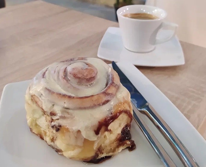- Синнабон: Этот классический десерт с корицей продолжает быть символом сладкой жизни. Теплый, с нежной начинкой и идеальной сладостью, он занимает почетное место в десертной карте современных кафе.